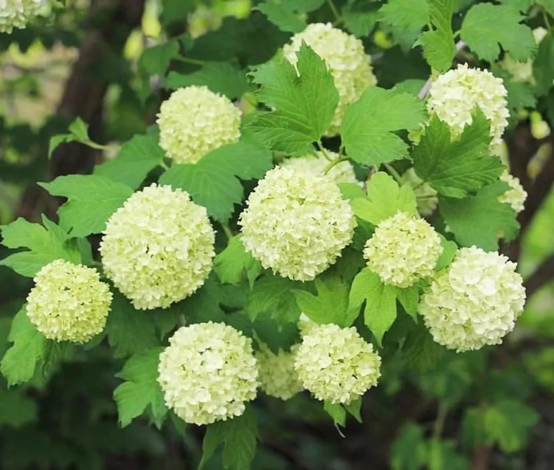 欧洲木绣球和常见的大花绣球并不是同一类植物。这些木绣球是属于忍冬科荚蒾属的。并不是绣球属的,它只是名字,里面有绣球。