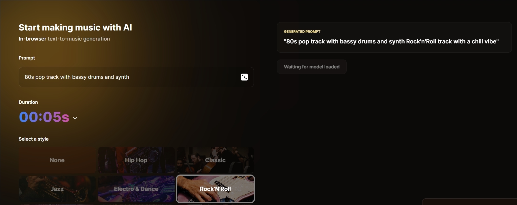 本地化模型加载:用户打开AI Jukebox的网页后,系统会自动加载一个大约700MB大小的生成模型,这意味着用户不需要进行复杂的设置或安装过程。