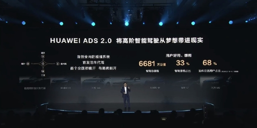 4月24日上午10点,华为智能汽车解决方案发布会召开。华为智能汽车解决方案BU CEO靳玉志在会上重磅宣布,华为ADS 2.0智驾总里程达6681万公里,智驾里程占比高达33%,泊车日活用户占比更是达到68%。