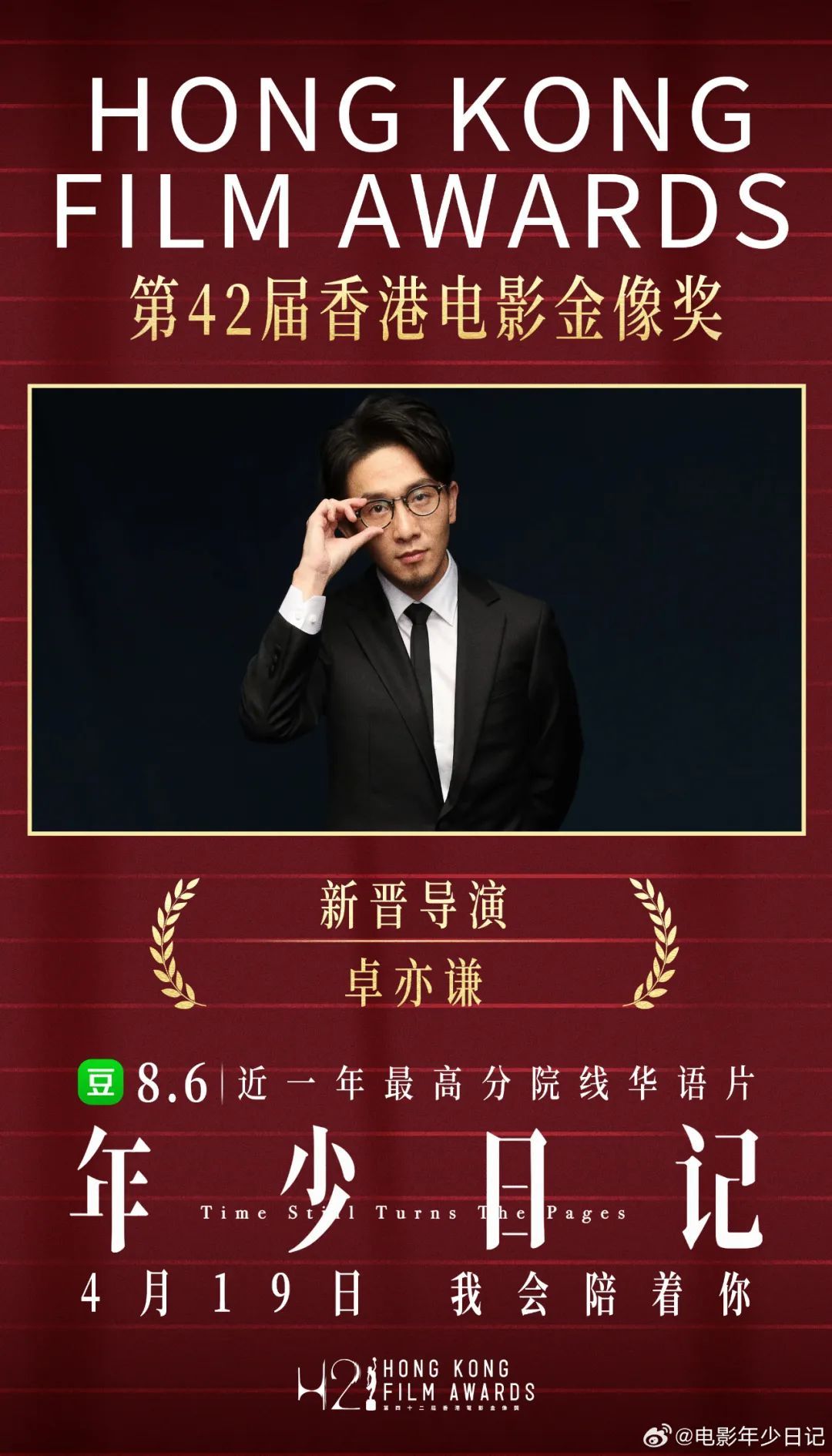 卓亦谦此前当了十年编剧,在香港电影金像奖的创作组里,写了四年颁奖典礼的台本。他本以为在金像奖的工作,就是与香港电影最近的距离,坚持、努力和幸运眷顾了这位年轻有才的导演,《年少日记》如愿登场,他也从金像奖的办公室走上了金像奖的舞台中心。