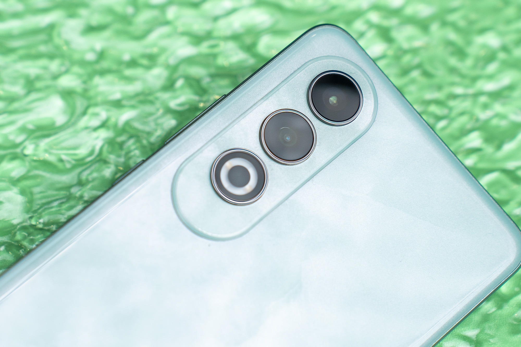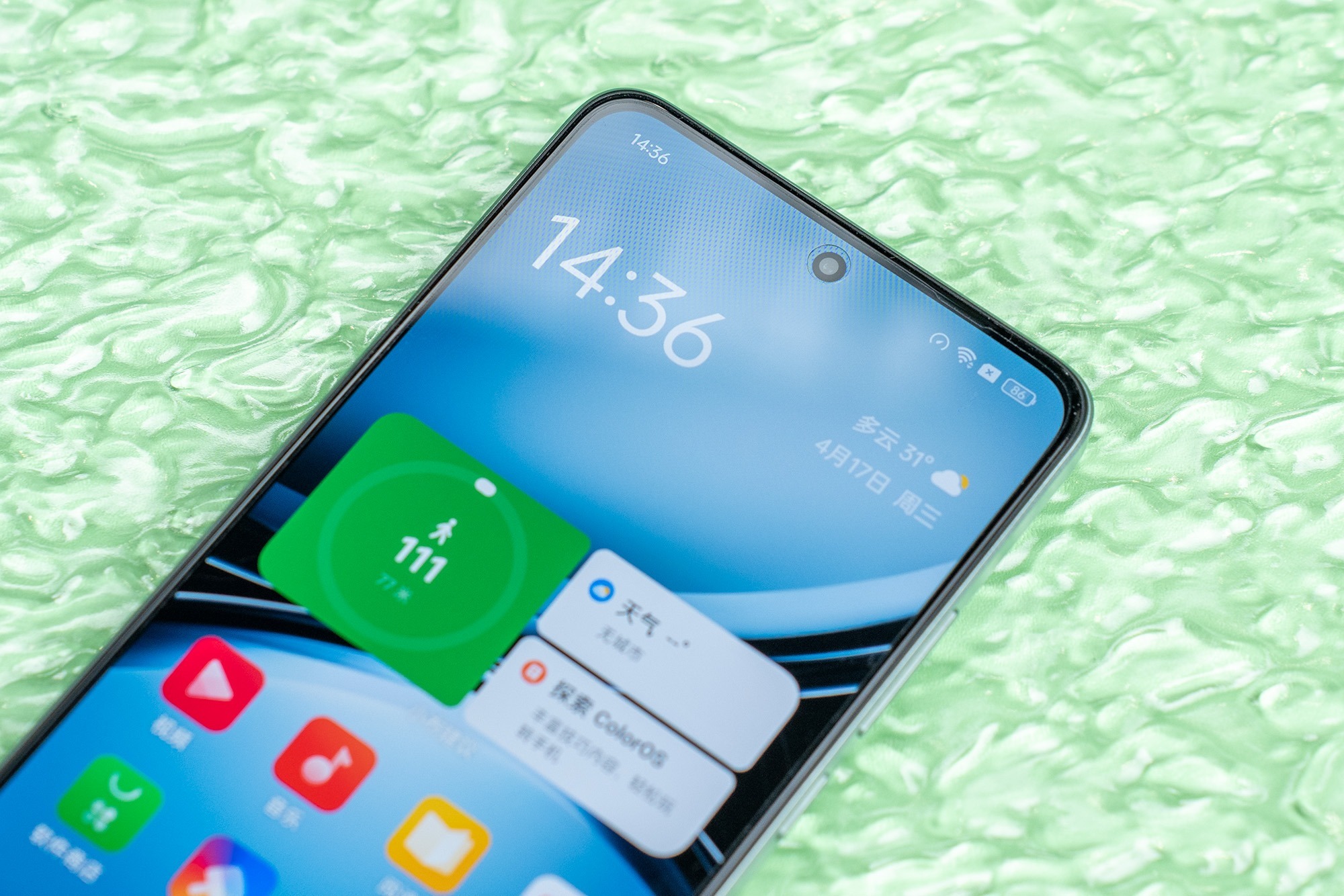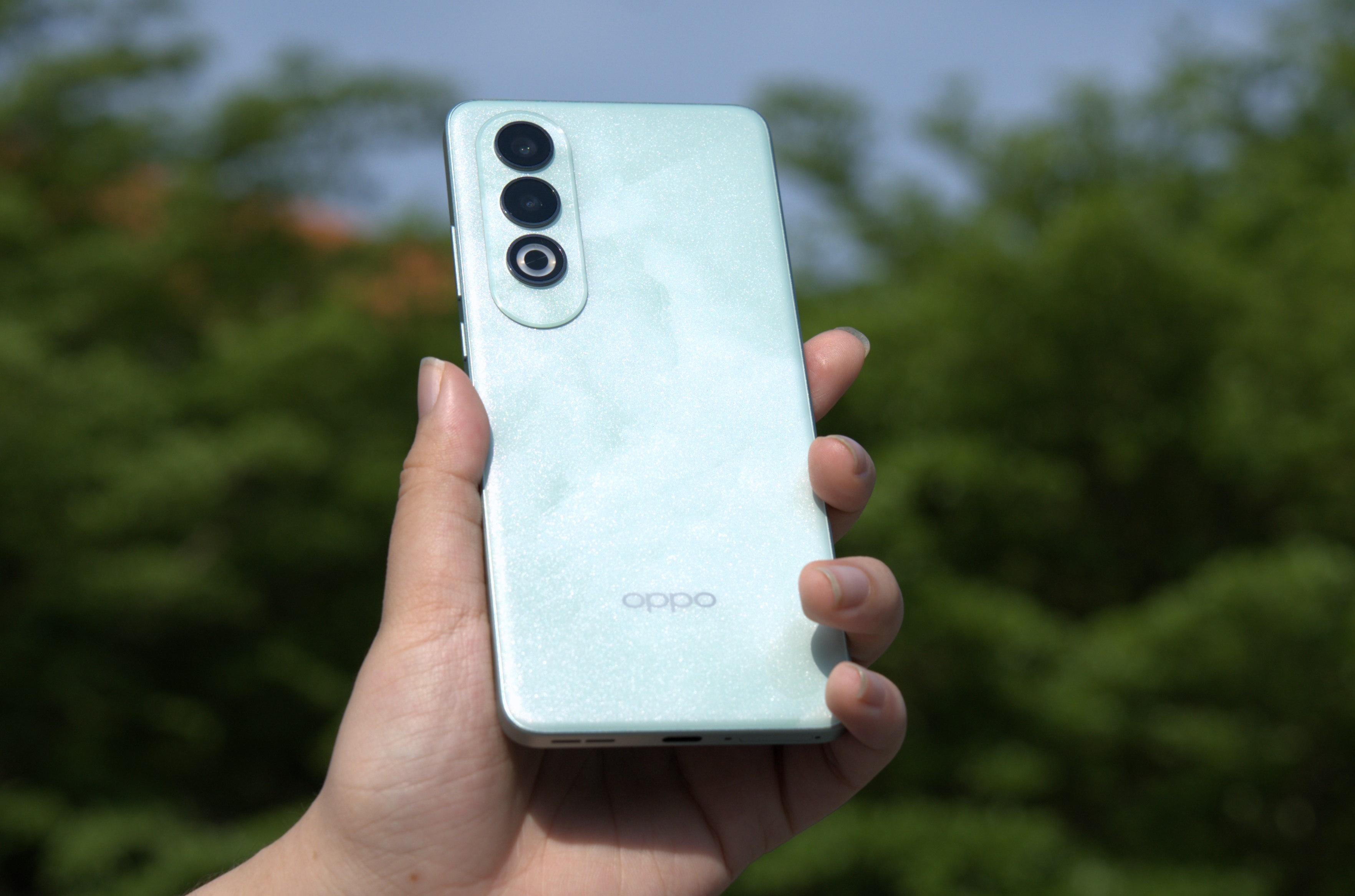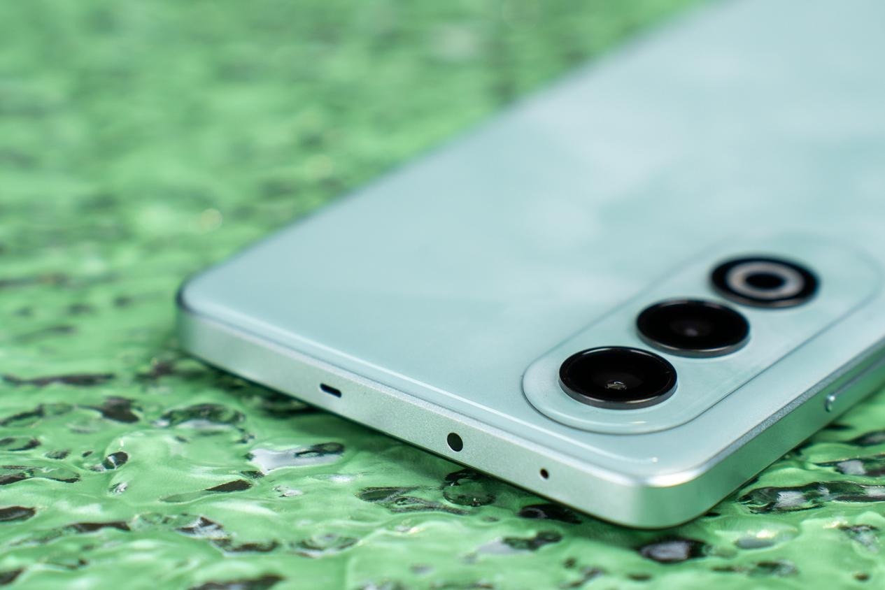 在配色上,这次OPPO K12我们拿到的是「青云」配色,采用了纳米增亮光学膜技术,独具特色的「翡翠云纹」设计令人眼前一亮。仿佛水从石缝中渗透,格外高雅精致。