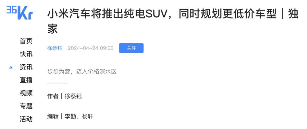 目前,小米汽车暂未公布有关第二款车的任何信息,所以该报道的真实性还有待确认。