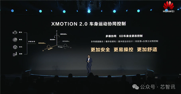 该系统可通多维协同、6D车身全姿态控制,利用多传感器融合、毫秒级感知、厘米级运动估计、双前馈+反馈主动预控制,实现更加安全、更易操控、更加舒适。