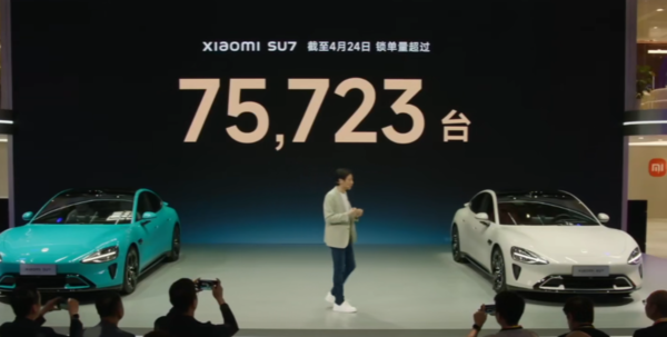 在此次发布会上,雷军首先介绍了小米SU7的订单量。截至4月24日,小米SU7的订单量已经达到了75723台,并且在上市28天交付了5781辆,表现非常出色。雷军表示,作为首款车型,小米SU7受到了广泛的关注。成为了“百万网友严选车”。