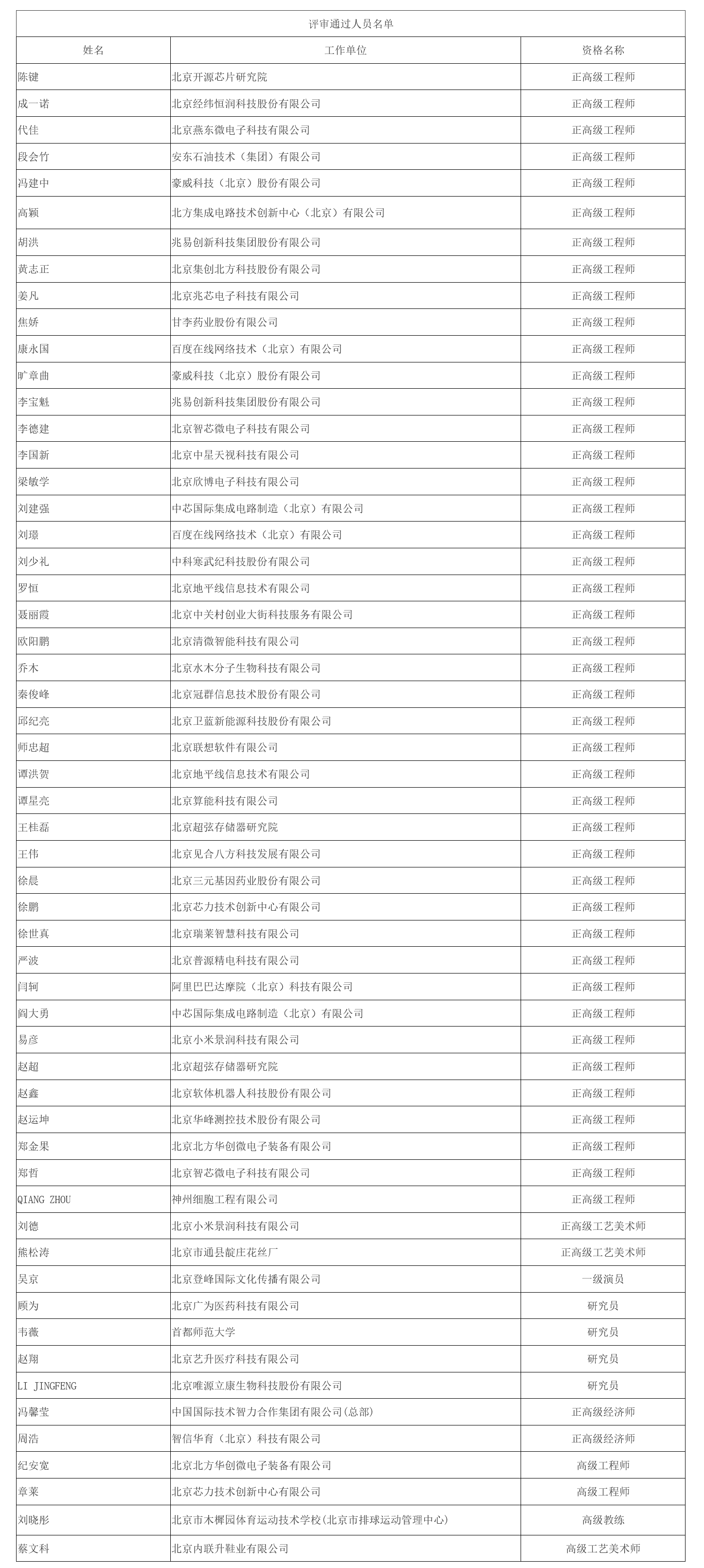 北京市高层次、急需紧缺、特殊特艺人才高级职称考核认定委员会于2024年4月16日召开会议,陈键等56人(名单附后)通过了专业技术资格考核认定。根据《北京市职称评审管理暂行办法》(京人社事业发〔2020〕12号)的规定,经复核,现予以公示。