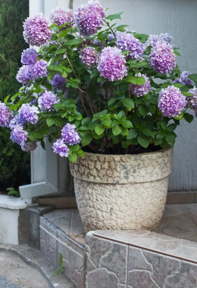 如果是刚买的盆栽绣球花苗(大量开花的,除非水分跟不上,不然都不建议换盆),还没有大量开花的,或者刚开始有一点点花芽的,根系已经长满盆土了,可以在土比较干的时候,带土换盆,一般是买回家先养在通风透光的地方,给一些柔和的光照,盆土比较干就浇透。