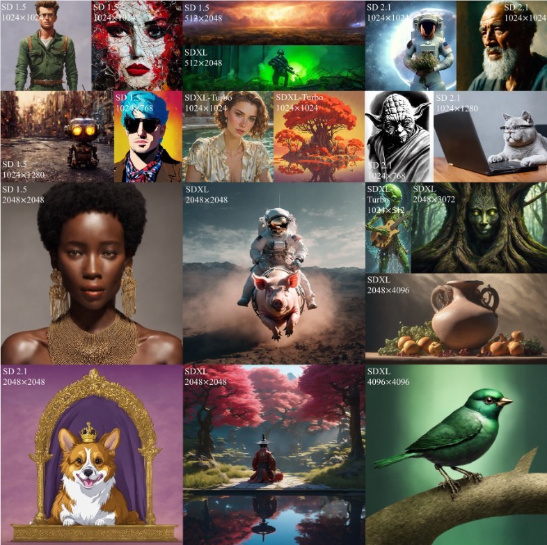 通过将HiDiffusion应用于各种预训练的扩散模型,不仅可以将图像生成的分辨率提高至4096×4096,而且能将图像生成速度提升1.5至6倍。广泛的实验验证表明,这一方法不仅解决了对象重复和高计算负担的问题,而且在生成高分辨率图像的任务上取得了卓越的效果。
