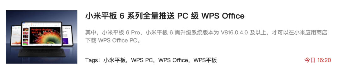机哥今天下午看到小米平板6全系推送了PC级WPS的消息,本来想直接从我的抽屉里边,随便掏一台米板6体验一下的。