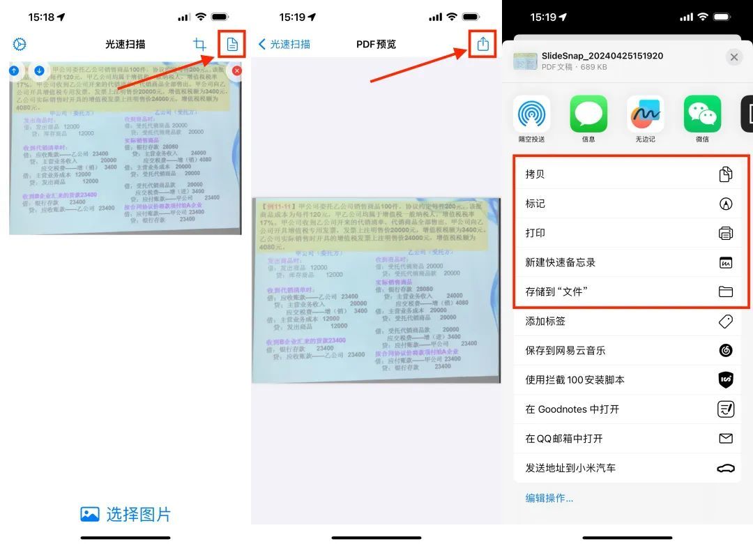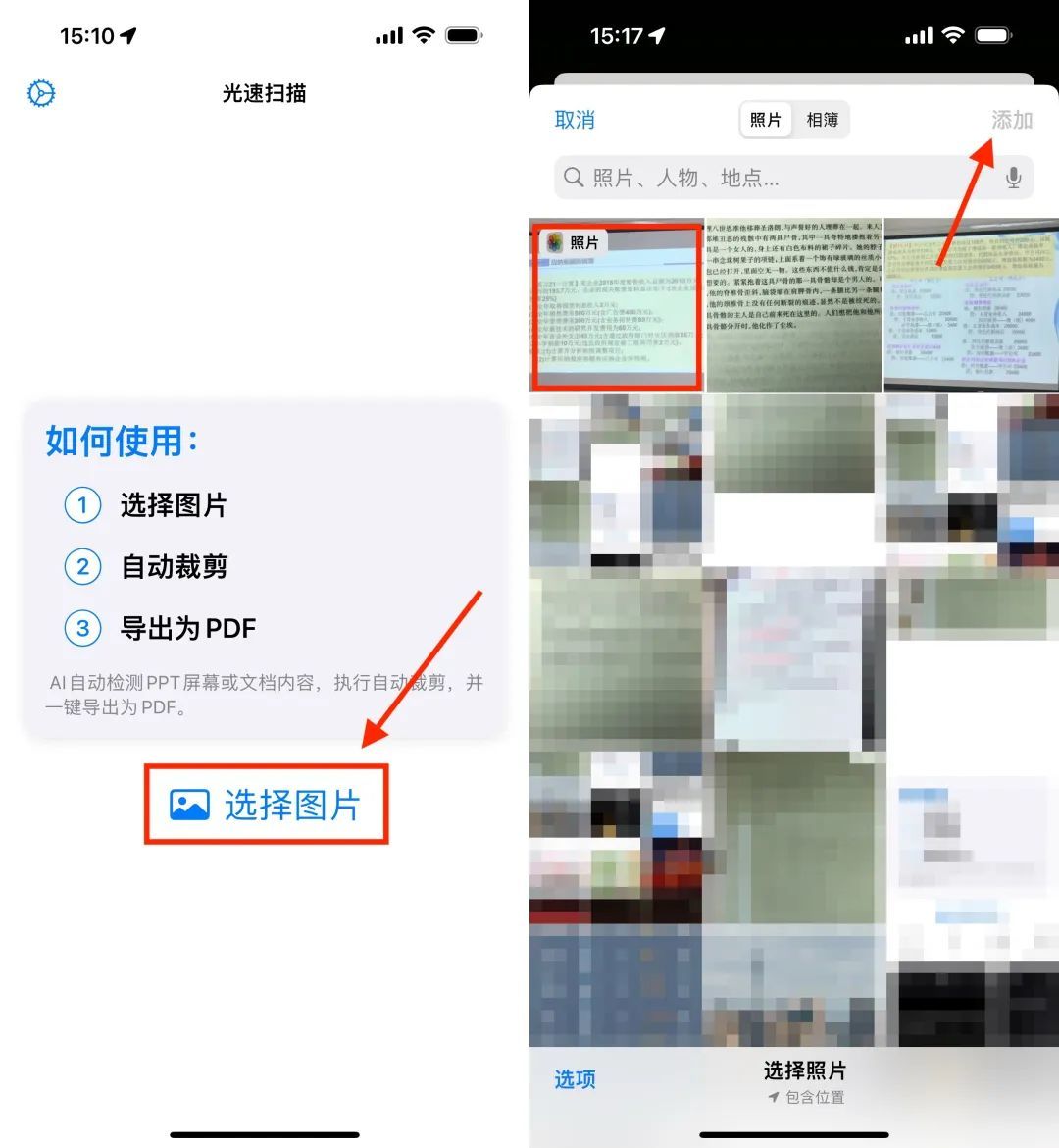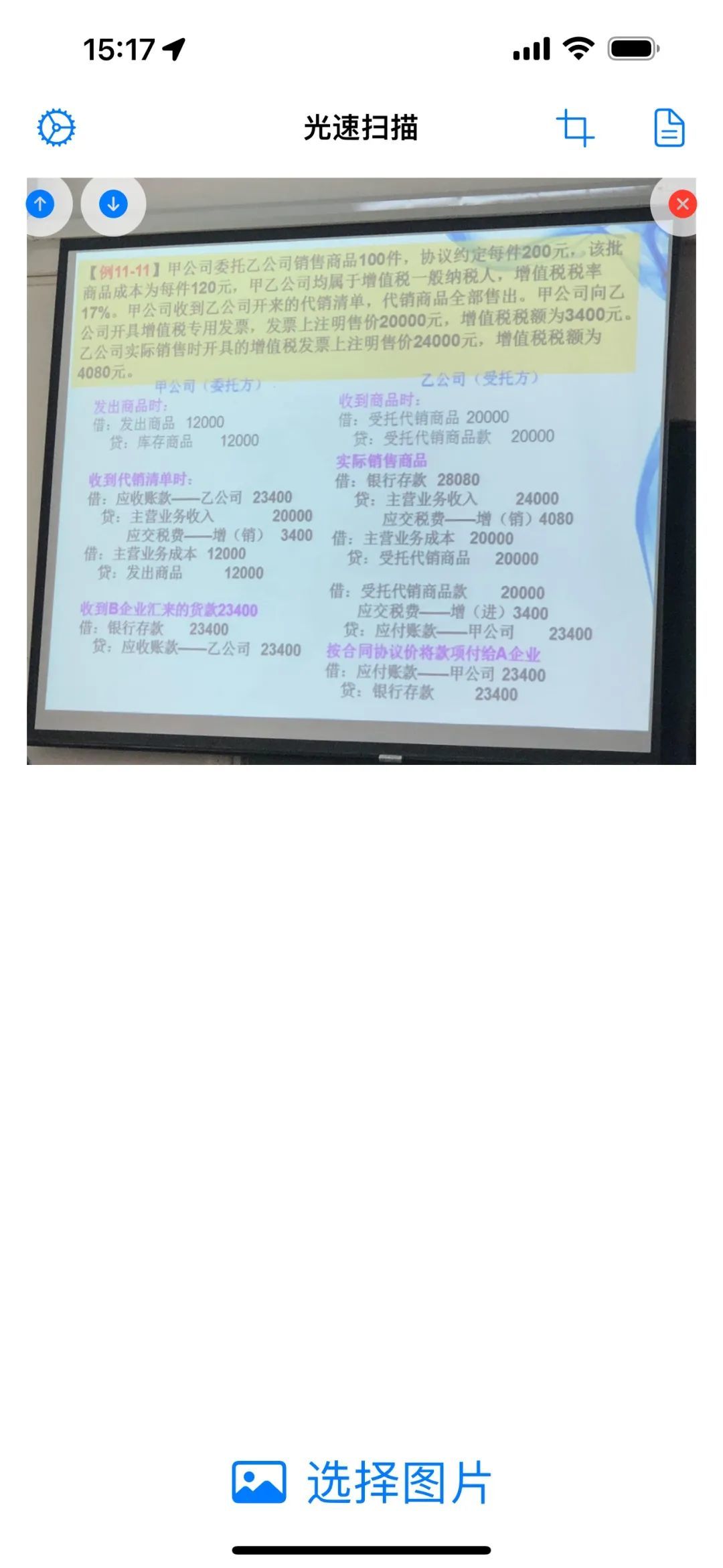 点击屏幕正中央的「选择图片」,就能导入咱们用手机拍摄的PPT、文本照片了。
