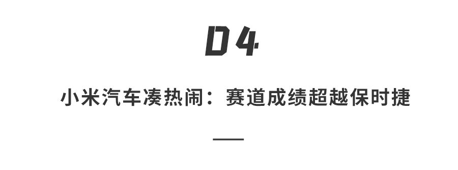 最后雷军揭晓了小米SU7浙赛赛道成绩,小米 SU7 Max 搭配原厂轮胎,圈速成绩为 1 分 42 秒 163,搭配米其林 CUP 2R 半热熔轮胎,圈速成绩达 1 分 38 秒 043,这个成绩已超过保时捷Taycan Turbo S,那么小米SU7有没有再次让大家心动呢?
