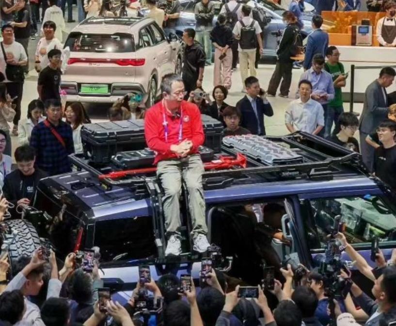 不会开车、没有驾照的周鸿祎在车展首日直接攀上了东风猛士917的顶部,自嘲是车展最老的车模,吸引了众多人群流量。