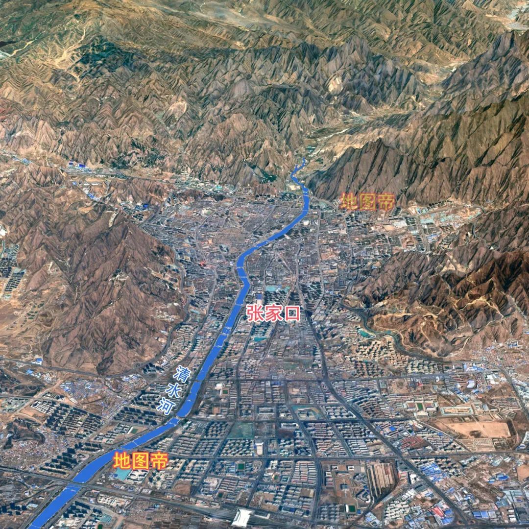张家口位于河北省西北部,地处阴山山脉与太行山脉结合部,北部是大马群山,南部是太行山脉的熊耳山等,地势西北高东南低。清水河自北向南穿过市区注入洋河,再向东注入桑干河。