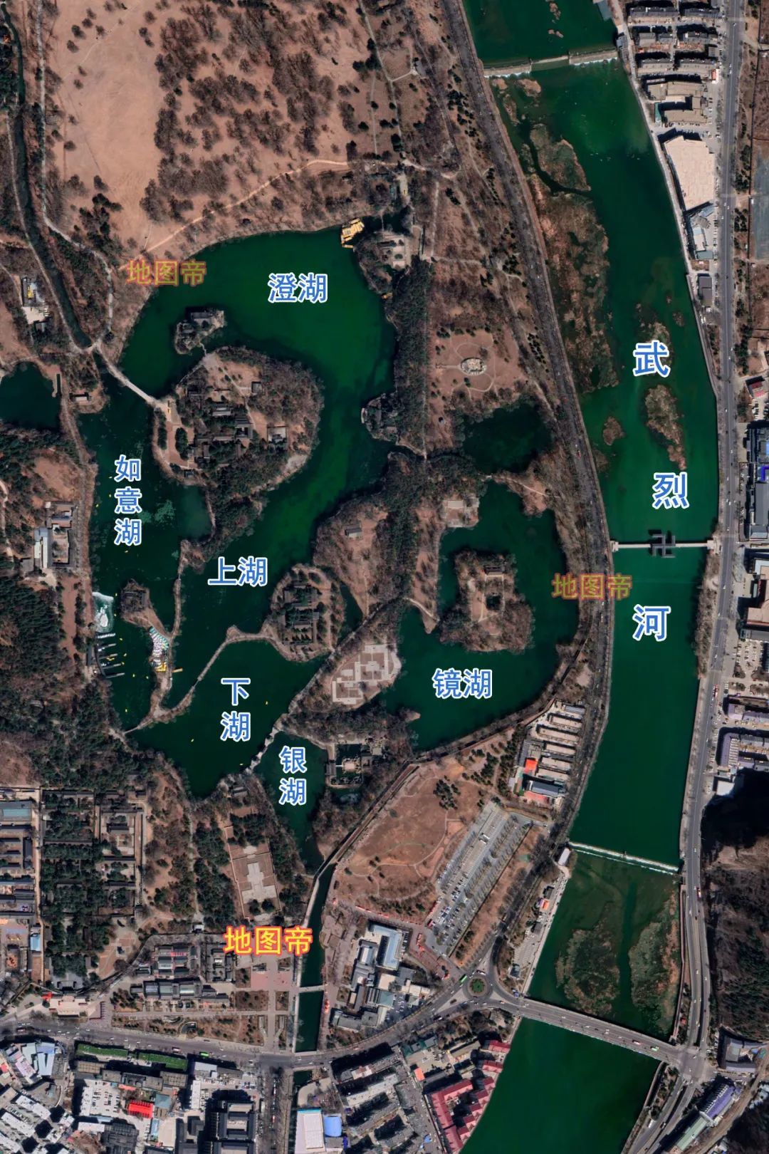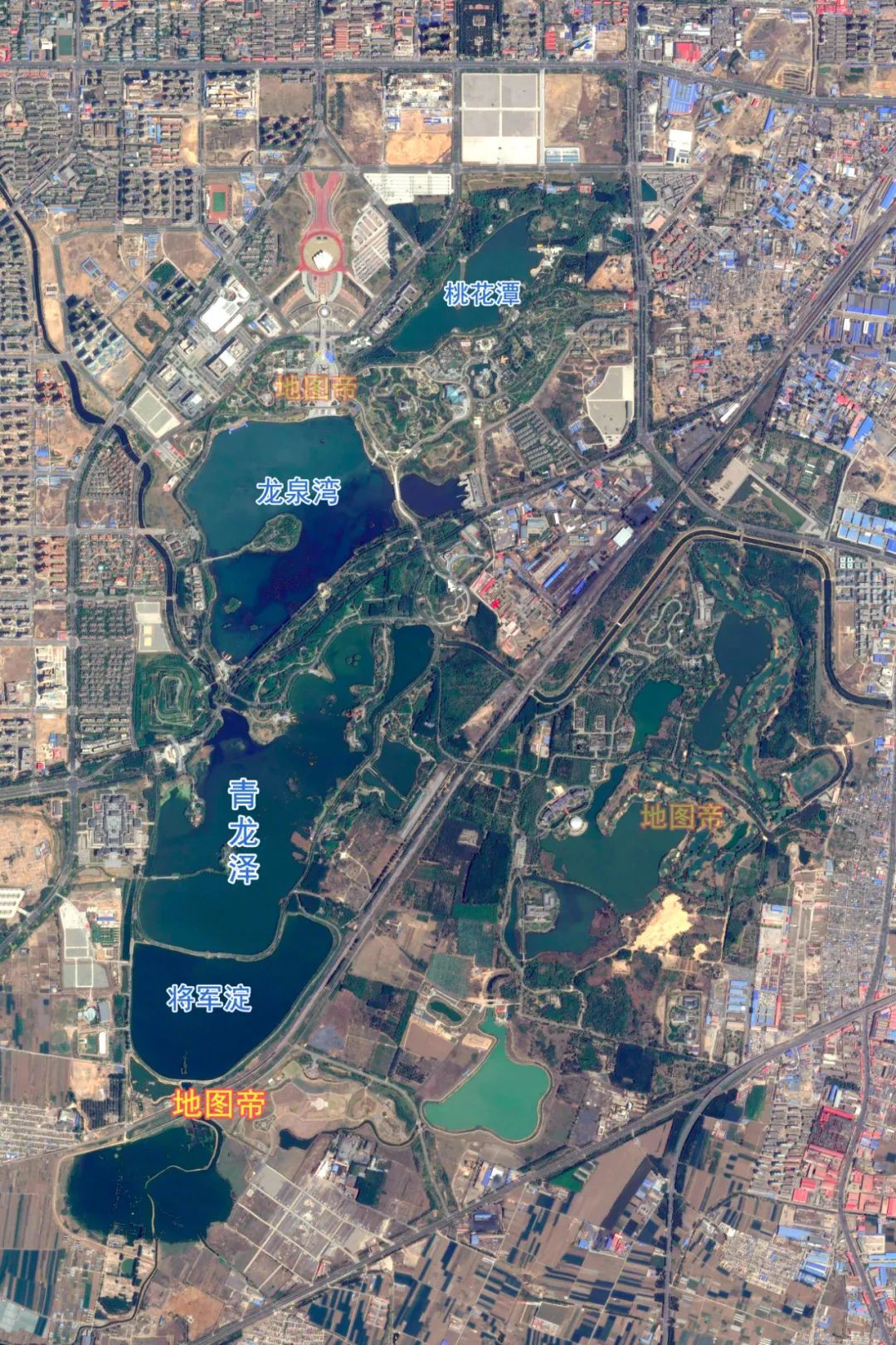 唐山市中心如江南水乡,这几个湖从北往南依次是桃花潭、龙泉湾、青龙泽、将军淀。