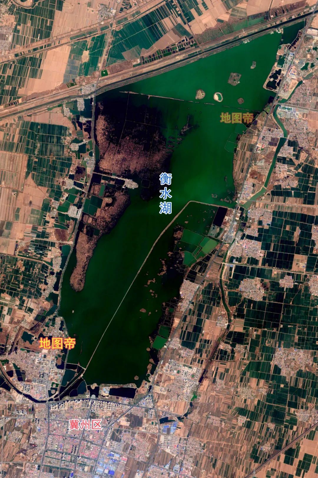 衡水湖位于在衡水桃城区、冀州区之间,是华北平原唯一保持沼泽、水域、滩涂、草甸和森林等完整湿地生态系统的自然保护区,面积约283平方千米。