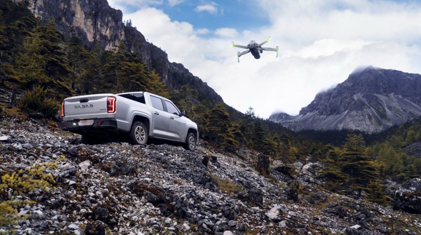 更值得一提的是,江铃大道追光者还支持无人机车机互联,即该车支持无人机伴飞模式,直接在车机大屏操作(必要高难度飞行需配合无人机手柄操作),就能实现无人机起飞、探路、环绕、跟随等,真正实现了用玩合一。相比之下,虽然长城炮的中控屏尺寸稍大一点,智能语音表现也不错,还支持车载Wifi热点功能。但缺乏诸如车载KTV、无人机车机互联这样的亮点功能,行车趣味性稍逊一筹。