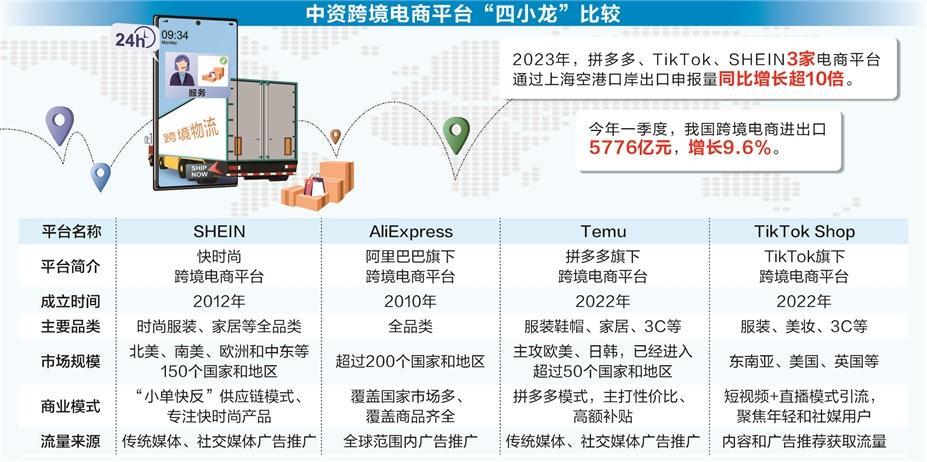 众多跨境电商平台中,以SHEIN、拼多多旗下Temu、AliExpress、字节跳动旗下TikTok推出的TikTok Shop最为引人注目,并被业界称为跨境电商平台“四小龙”。