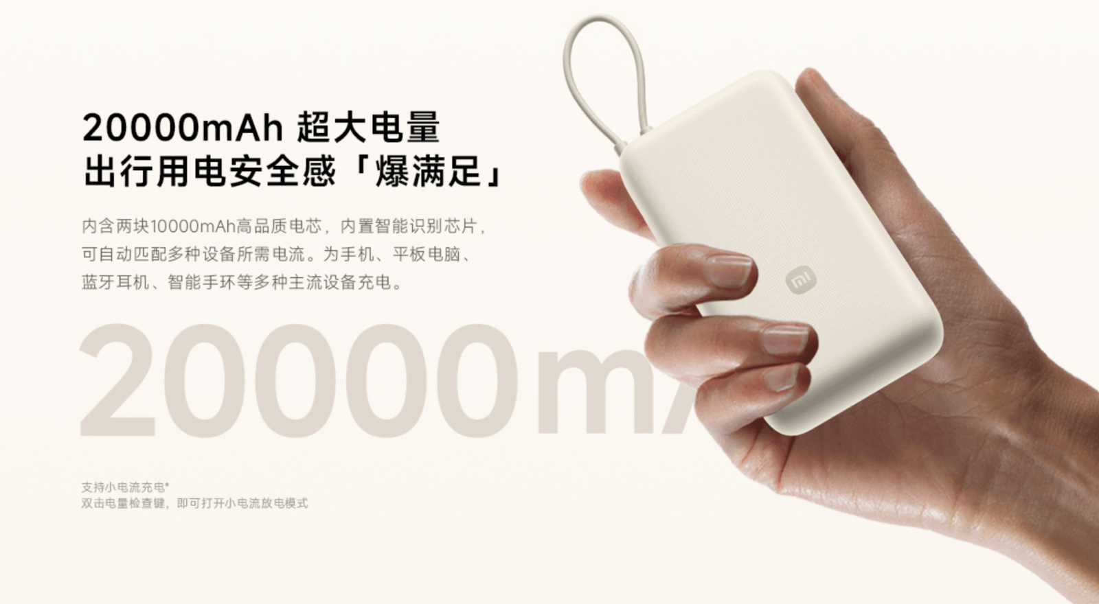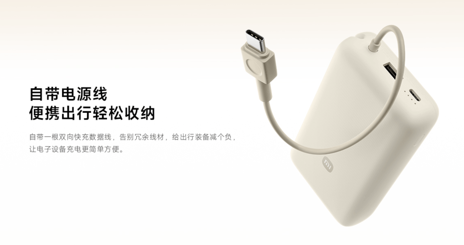 去年年中,小米推出了一款自带线的移动电源产品,以这种更新潮的形态,为需要移动电源的用户提供了更优秀的体验。来到今年年中,小米又带来了一款容量更大的版本,命名为小米自带线充电宝 20000。