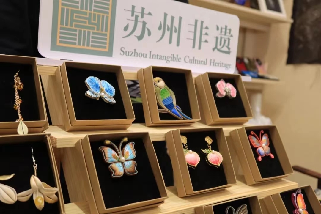 现场,非遗文创产品销售一空。苏绣耳环、胸针,缂丝挂饰、丝绸玩偶、眼罩等等,让非遗穿在身上、戴在手上、用在生活里。