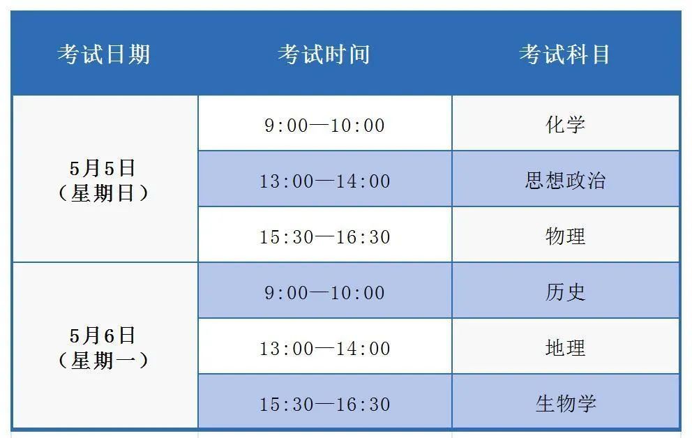 (3) 5月5日下午物理科目考试,14:45考生开始入场, 15:45禁止考生入场,16:00后考生可提前交卷离场。