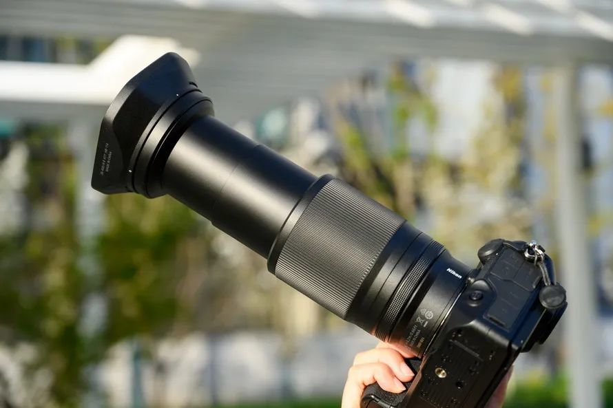 在握持感方面,Z 28-400mm f/4-8搭配尼康Z8时,机身较重不会起到明显配平作用,较深的手柄也不会提升握持手感,整个系统手感是比较重的。而在Z7上,虽然相机手柄较短,但得益于机身更轻,整个系统手感会比Z8下更好,从这点不难看出Z 28-400mm f/4-8的定位。