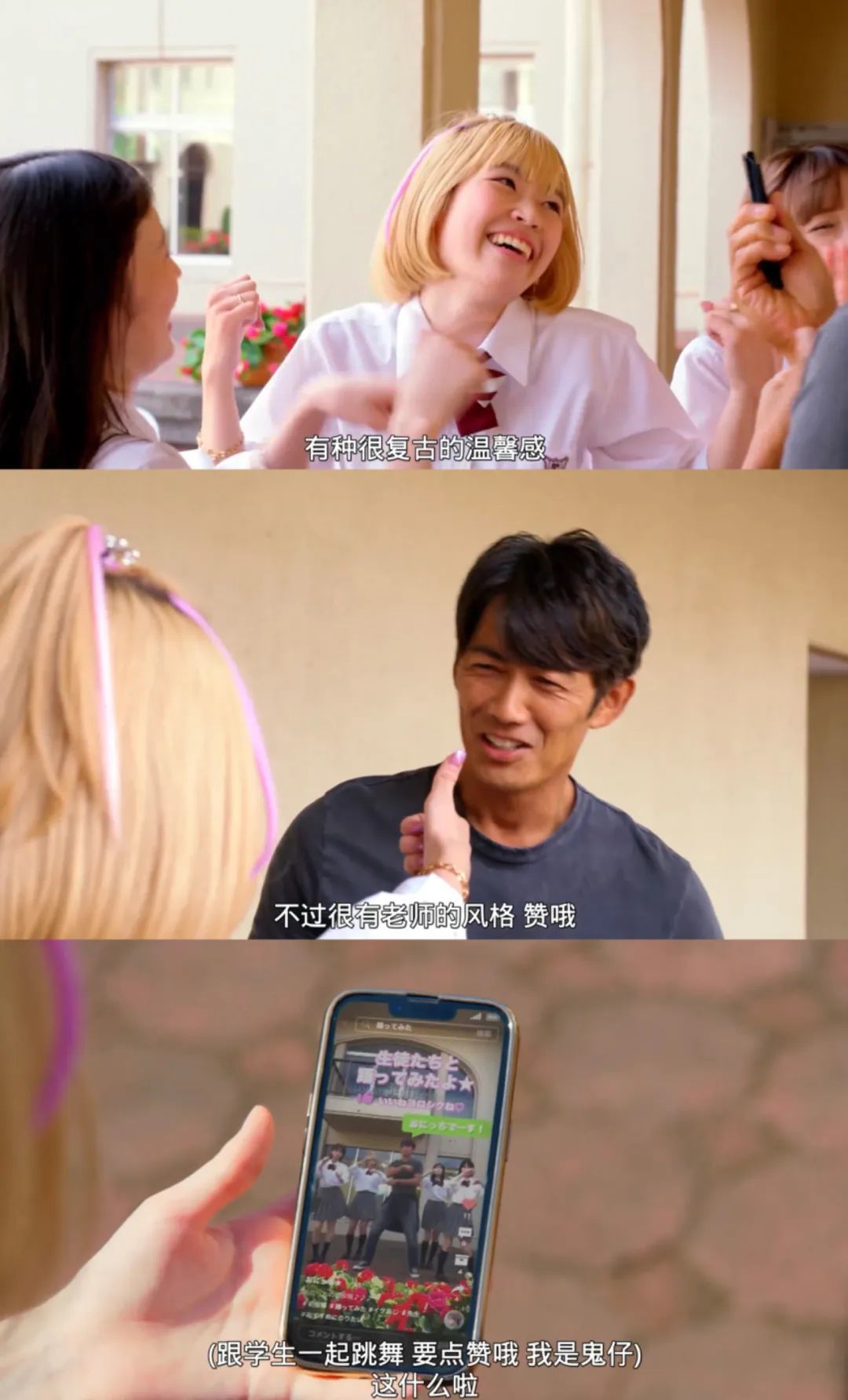 不过,为了拉近师生关系,他也和学生们一起录了段跳舞短视频。