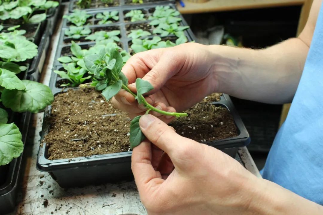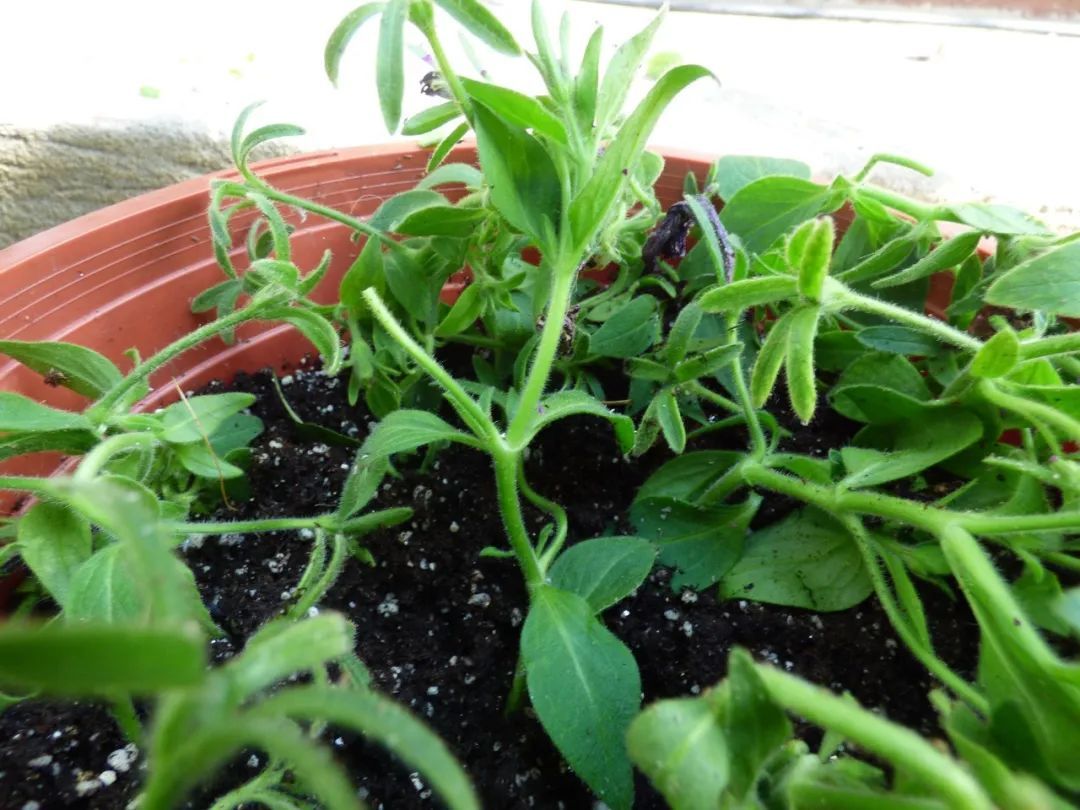 还有就是提前扦插一些矮牵牛幼苗,在修剪的时候,把过长的茎剪下来,枝条重新扦插到盆土中,每一段大概有7~9厘米长,去掉底部的叶子,扦插在比较小的花盆中,养在有较多散射光的地方,保持盆土微微湿润,大概两三周之后,扦插的苗就会慢慢生根发芽了。