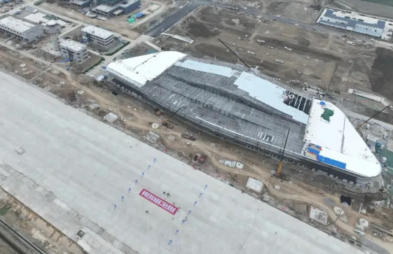 目前飞行区道面工程已全部完成,刻槽灌缝工序也逐步展开,航站区航站楼正在进行金属屋面施工,机场整体项目进展顺利。