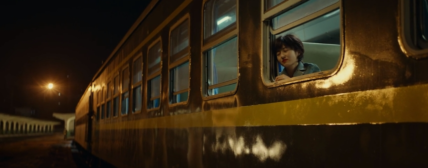 比如在影片中段,林秀珊独自坐火车的情节,当面对隔壁大老板的“滔天气势”,作为底层打工人的林秀珊也会有阵阵的不安与拘谨。