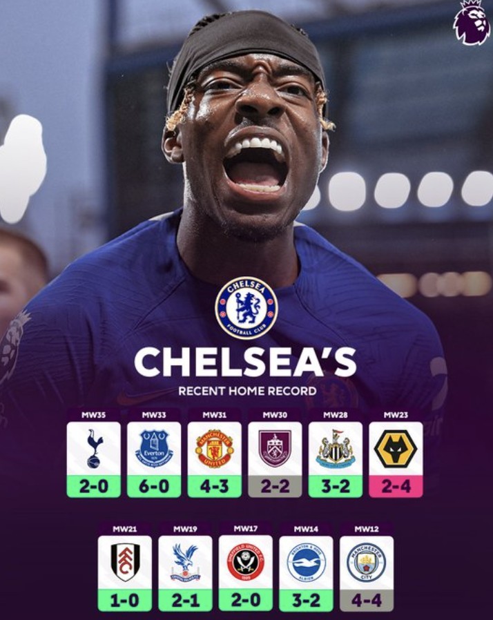 北京时间5月3日凌晨,英超第26轮补赛中,切尔西在主场2-0击败热刺。据统计,切尔西近11场在主场作战的英超联赛战绩为8胜2平1负。