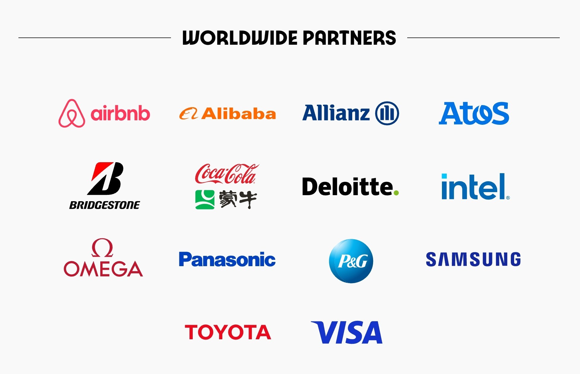 本届奥运会全球合作伙伴包括宝洁、英特尔、阿里巴巴、可口可乐和蒙牛等15家企业,其中可口可乐与蒙牛两家企业联合赞助,属于国际首例。高级合作伙伴企业则包括奢侈品巨头LVMH集团、零售巨头家乐福集团等7家品牌。此外,巴黎奥运会还有13家官方合作伙伴企业,以及44家官方供应商企业。