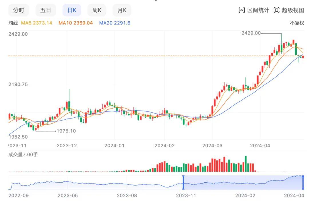 自去年10月以色列-加沙冲突爆发以来,黄金的避险作用——黄金通常被用作对冲通胀和货币贬值的工具——进一步提振了金价,上周金价触及每金衡盎司2431美元的历史高点。