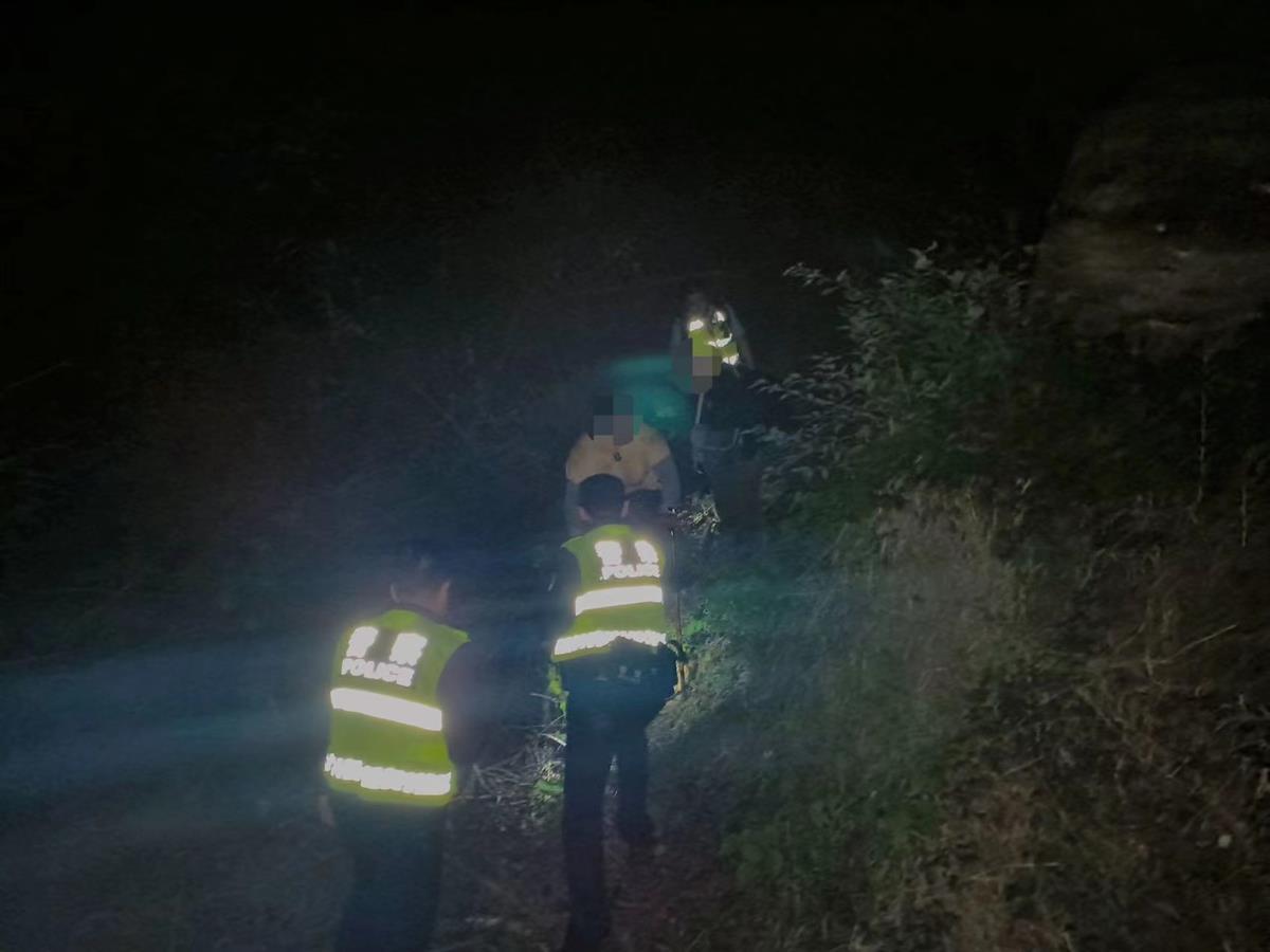 此时,李先生和妻子已疲惫不堪。李子翔立即上前安抚他们的情绪,并为他们提供了水。在确定两人没有受伤可以行走后,民警辅警搀扶着被困者,一步一步往山下走,最终于5月3日凌晨0时45分平安抵达山下。