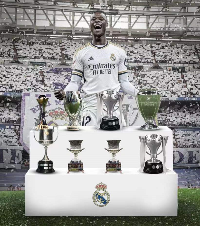 自2021-22赛季加盟皇马以来,21岁的卡马文加已经在球队拿了8个大赛冠军,实现了俱乐部荣誉大满贯。