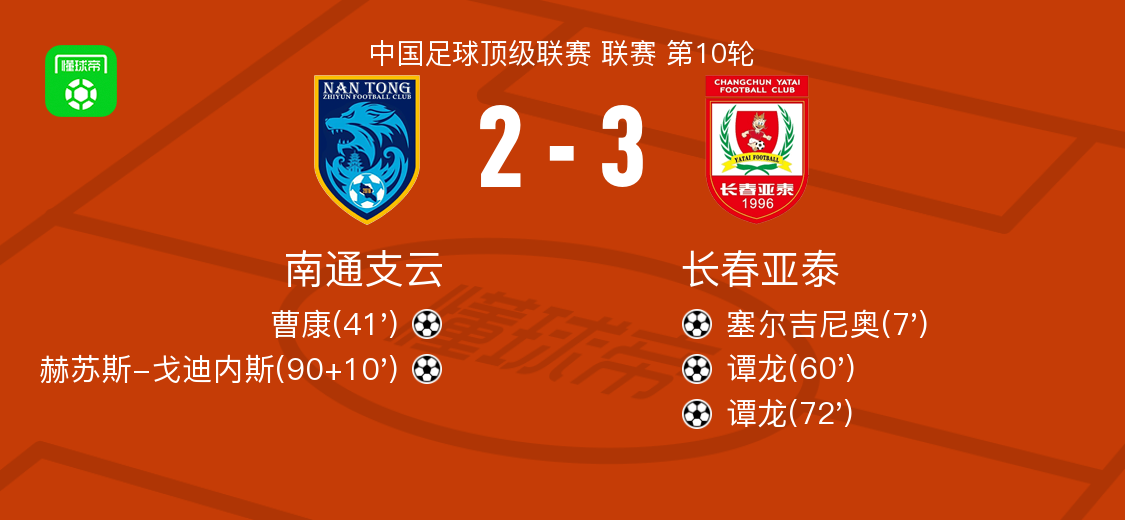 北京时间5月5日南通支云vs长春亚泰,谭龙得到全场最高的8.2分,宋浩宇得到全场最低的6.1分