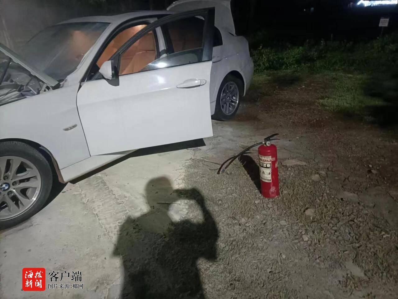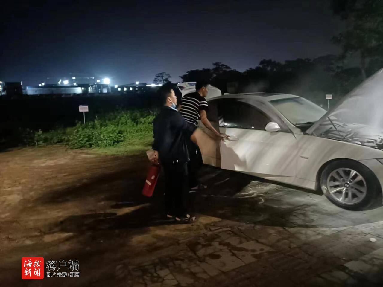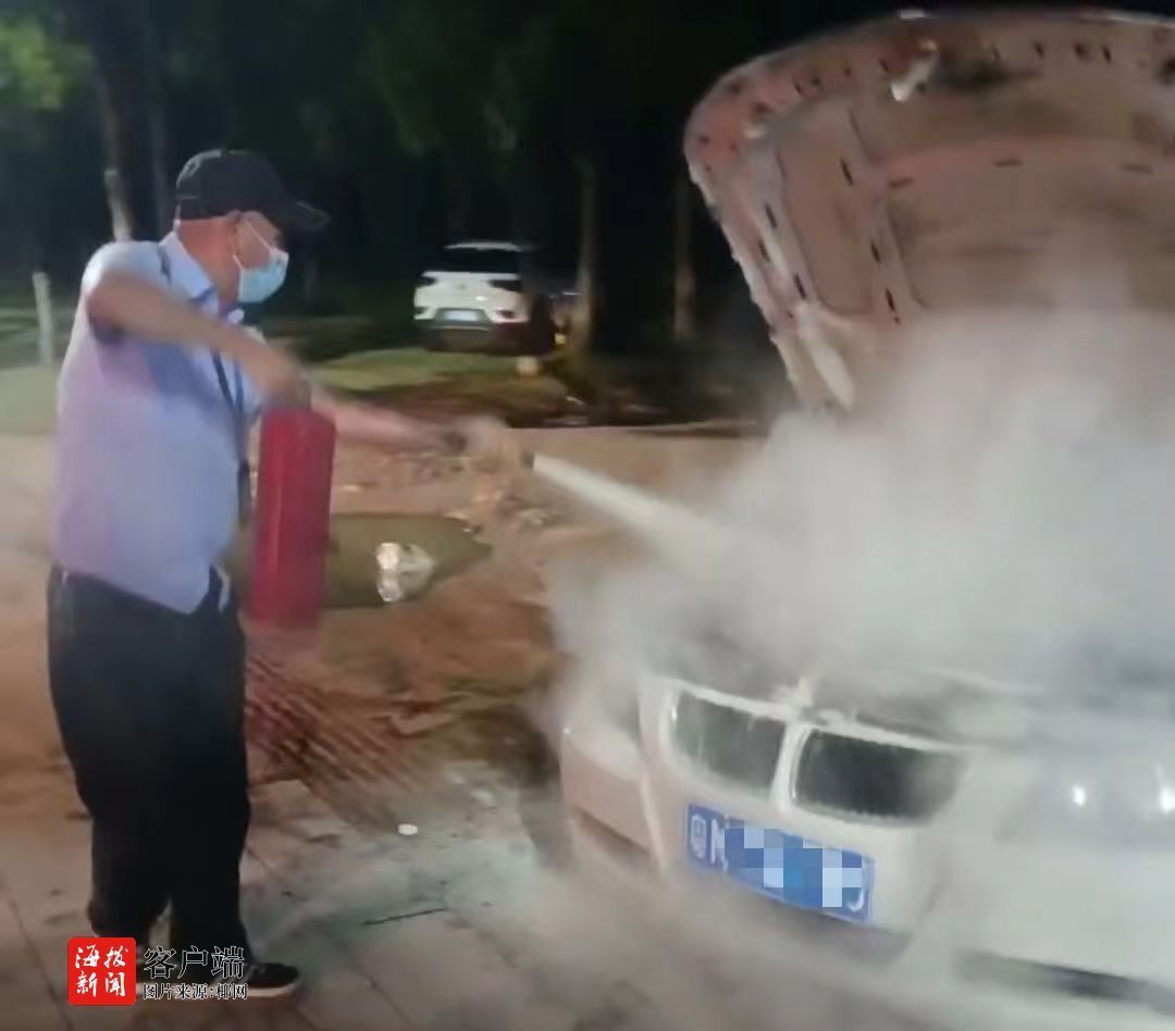 据了解,2日20时32分左右,黄文山驾驶一辆G51路公交车运营到海南师范大学桂林洋校区南大门附近时,突然发现路边一辆白色小轿车车头冒出滚滚浓烟,车主拨打119电话报警后,正在招手求助。