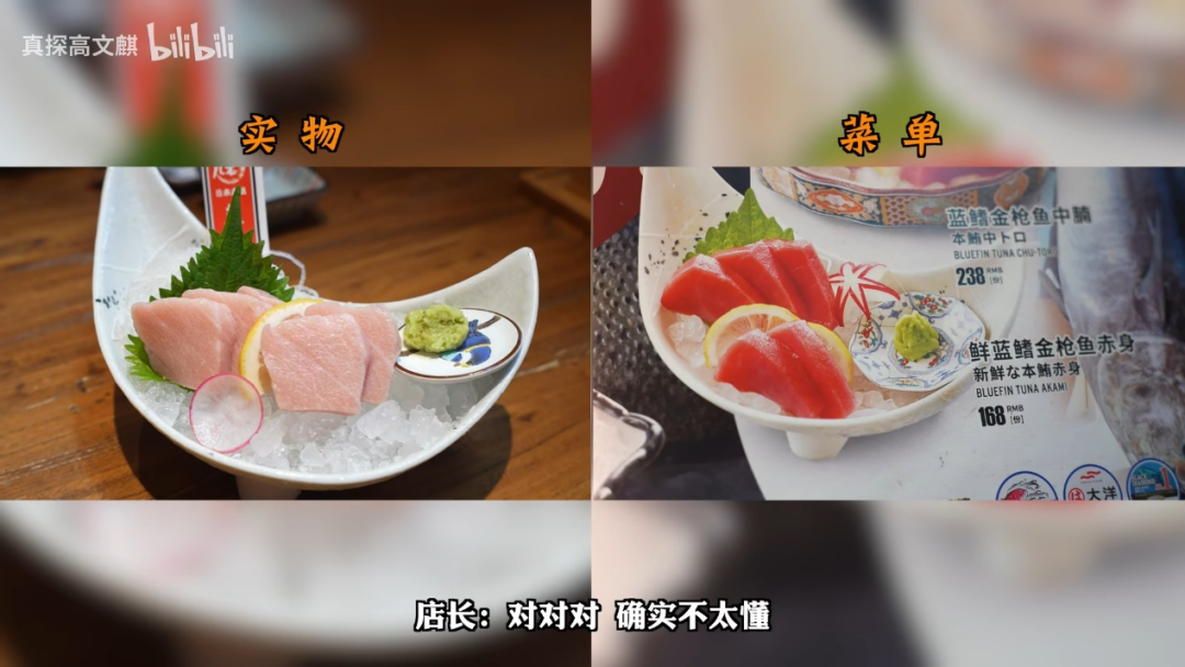 △老高在探店中发现北京一家居酒屋“货不对版”,这条视频B站观看量为270多万。(图/bilibili@真探高文麒)
