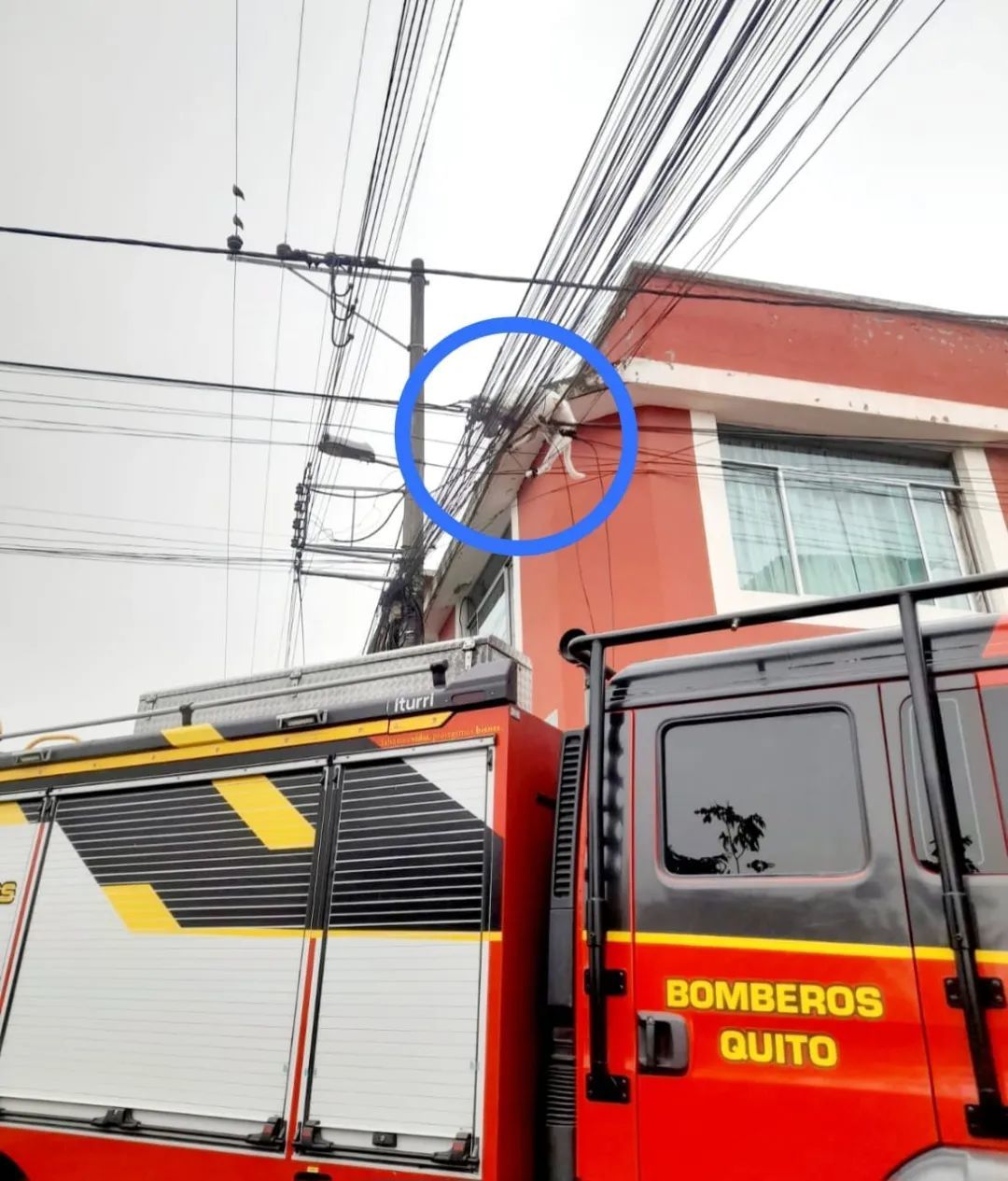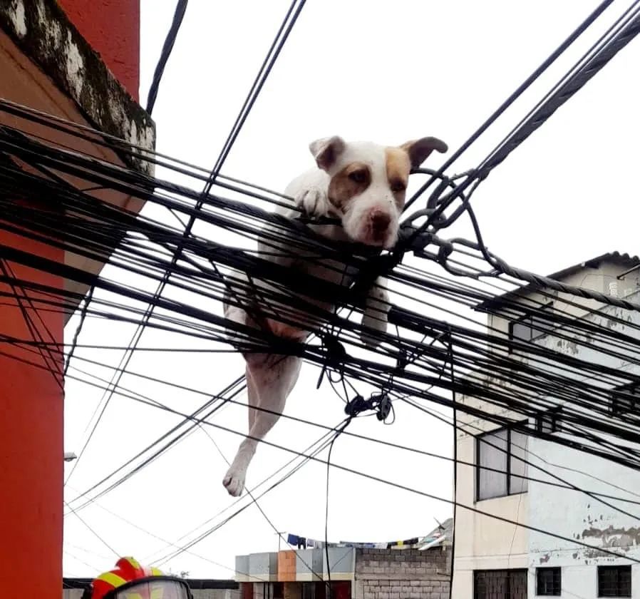 厄瓜多的基多消防队最近接到一通求助电话,一名铲屎官表示家里的狗狗目前正卡在电线杆上需要救援。