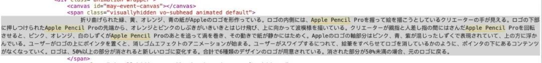 在日本苹果官网源代码中,将活动 Logo 的头图描述为创作者手持“Apple Pencil Pro”。