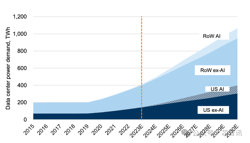 2030年全球AI数据中心对于电力的需求将增长160%