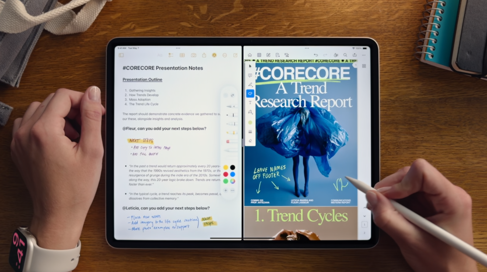 首先是尺寸,新款 iPad Air 在保留了 11 英寸的基础上,增加了 13 英寸的大屏幕版本,无论是记笔记还是多应用分屏,更大的屏幕尺寸在使用上会更方便。配色上新款 iPad Air 拥有蓝色、紫色、星光色和深灰色三款可选。
