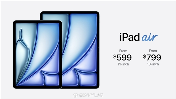 ⭐️ 新款 iPad Air11英寸起售价599美元,13英寸起售价799美元