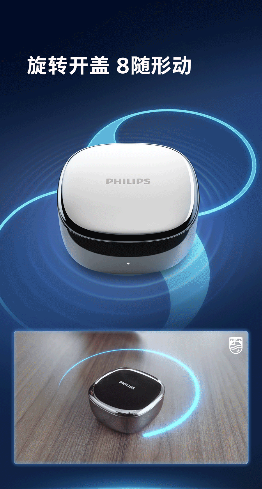 飞利浦“8号”会议降噪耳机富有创意的旋转开盖设计,呈现出“8”的吉祥寓意,也是“8号”的由来,横看为“∞”无限符号般的设计,象征着这款产品对“无穷机会 无限可能”的美好寓意。亮银配色的鹅卵石设计也彰显出现代工业设计美学的极致追求,尽显轻奢新风尚,非常符合都市白领对于数码产品颜值和个性化的更高追求。