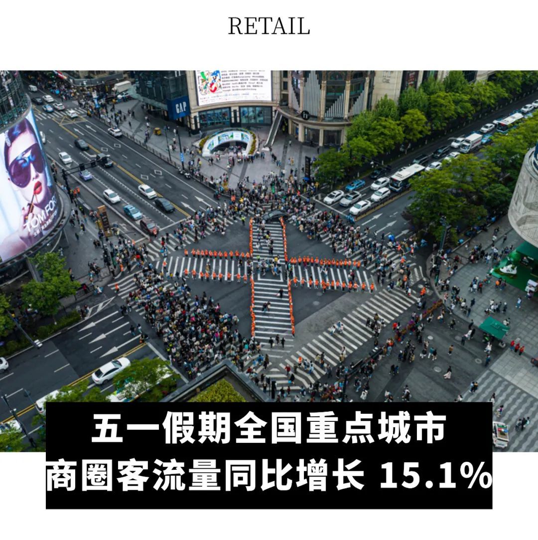 5 月 6 日,商务部商务大数据监测显示,2024 年“五一”假期期间,全国重点零售和餐饮企业销售额较去年同期增长 6.8%。同时,36 个大中城市重点商圈的客流量同比增长 15.1%。部分城市的销售数据也陆续公布。如上海市商务委发布消费市场大数据实验室(上海)监测数据显示,节日期间(4月30日-5月4日),全市线上线下共计消费 530.3 亿元。其中,线上消费 235.4 亿元,比 2023 年同期增长 8.3%。监测的 35 个商圈进店客流总量 2569 万人次,比2023年同期增长 5.4%。境外游客客流超 10 万人次,比 2023 年同期增长 62.2%。