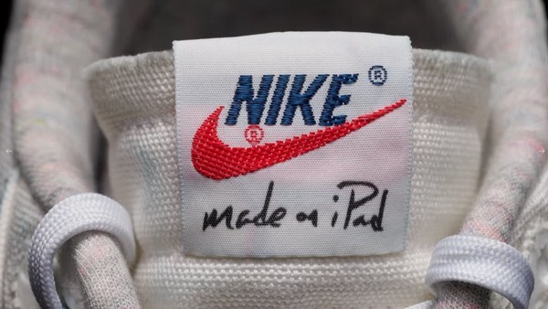 在昨晚的活动中,库克虽未刻意展示,但在视频里,若你留心观察他漫步于Apple Park走向镜头的那一幕,或许就能发现端倪。他的脚上不仅踏着一双Nike Air Max 1 '86s,而且这双鞋绝不平凡。鞋身以波浪和彩虹色调装饰,配以独特的走线设计。耐克标志性的Swoosh logo也被赋予新意,以草图般线条呈现,恰似苹果发布会前预告标识的手法。