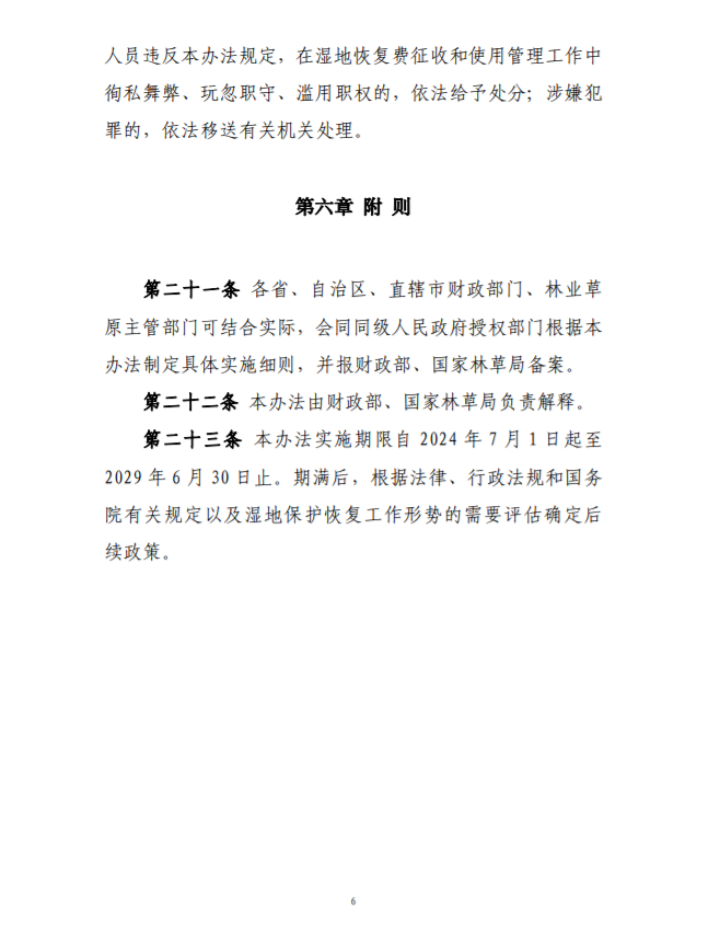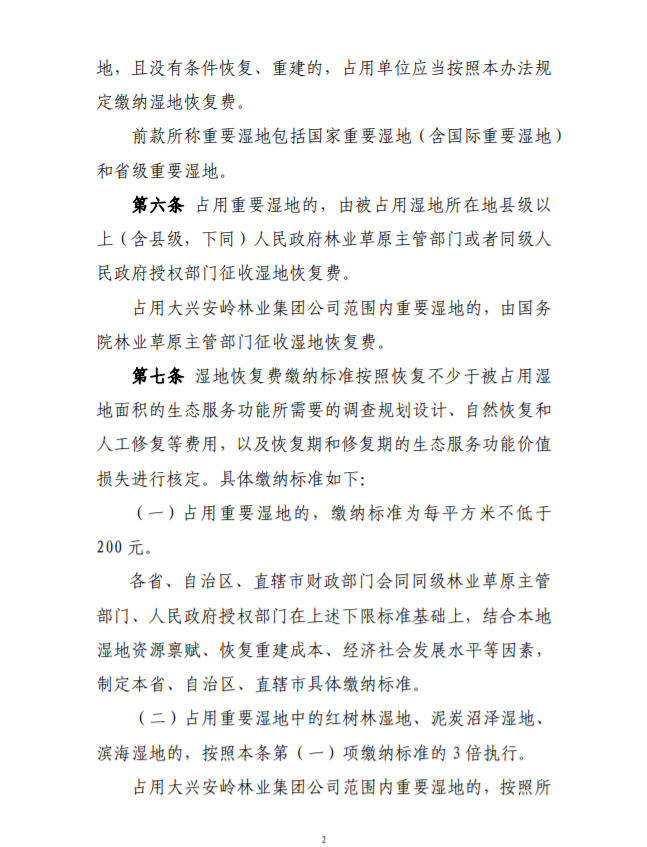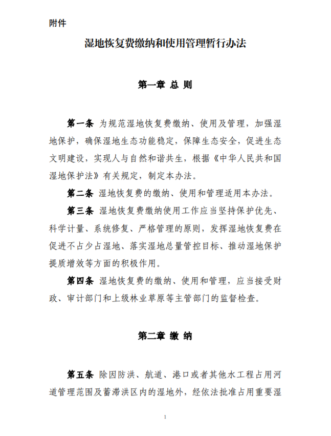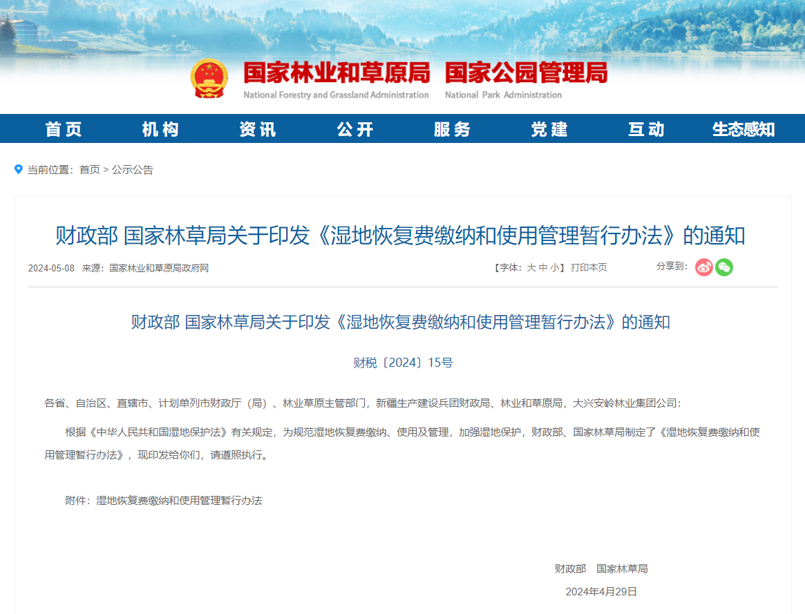 财政部 国家林草局关于印发《湿地恢复费缴纳和使用管理暂行办法》的通知