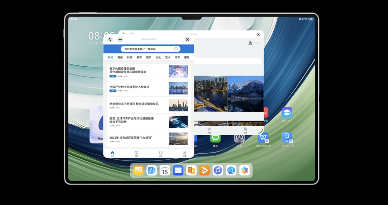 HarmonyOS 4 的加持也能进一步释放华为MatePad Pro 13.2英寸的生产力,悬浮多窗口功能可以随心叠放,配合平板超大的屏幕还可以自由调度,窗口还有 3 档尺寸调整,让你随心打造一个专属的「工作台」。