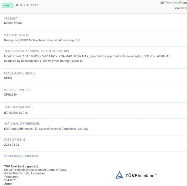 另外,OPPO Reno12 Pro 5G还成功通过了TV Rheinland的认证,这为我们揭示了其电池容量和充电速度的关键信息。根据认证信息,这款手机将搭载一块额定容量为4880mAh的电池,并支持高达80W的快速充电技术。实际上,Reno12 Pro的电池典型容量可能高达5000mAh。