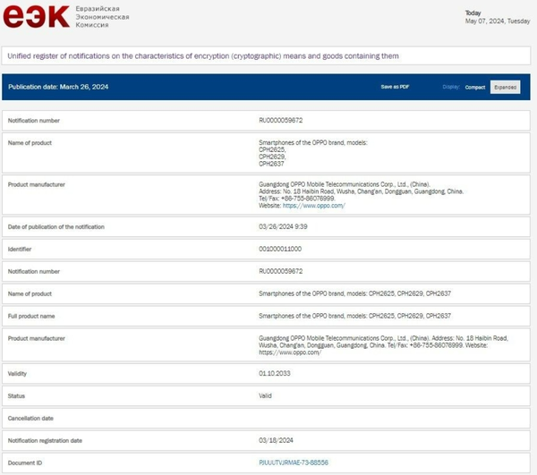 印度尼西亚的SDPPI认证平台已经确认,型号为“CPH2629”的OPPO新款手机将被命名为OPPO Reno12 Pro 5G,并将在印尼市场推出。同时,这款设备也获得了印度BIS、新加坡IMDA以及欧洲EEC的认证。EEC的认证信息还显示,OPPO Reno12 Pro 5G将支持NFC等多种连接功能。