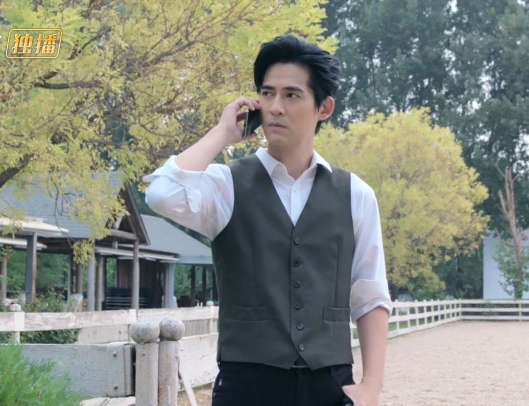 有一场戏是在马场拍的,远景看着就像是《流星花园》花泽类步入中年的样子,依旧是贵气十足,但脸上多了几分凌厉。