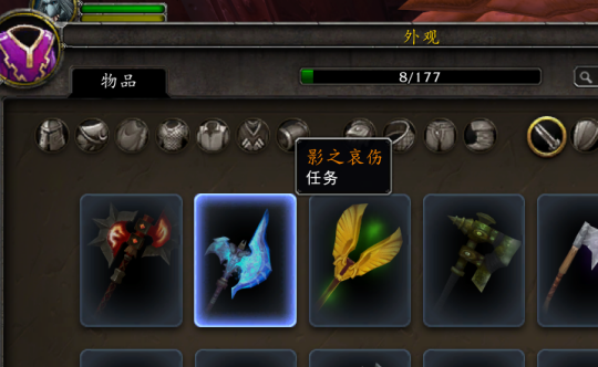 小O在游戏里看了一下,包括【雷霆之怒,逐风者的祝福之剑】、【萨弗拉斯,炎魔拉格纳罗斯之手】还有【影之哀伤】等橙装都已经加入到幻化列表中,这意味着拥有这些橙装的朋友现在就可以直接拿来幻化用了。